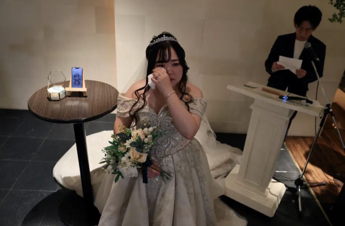 Gelin ise bu sözlerin karşısında gözyaşlarını tutamadı. Düğünün ardından fotoğraf çekimi için sanal gerçeklik gözlüğü takan bir fotoğrafçı Noguchi’yi fotoğraf karesinin yarısında tek başına durmaya yönlendirdi, böylece sanal damadın görüntüsünü de gelinin yanına ekleyebildi.