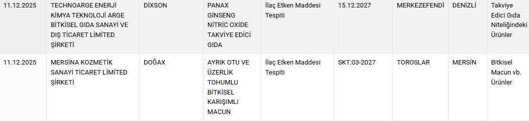 Listeye 2’si sağlığı tehlikeye düşürecek ürün olmak üzere toplam 36 yeni ürün daha eklendi. Listede zeytinyağı, yoğurt ve bal gibi ürünler yer aldı.